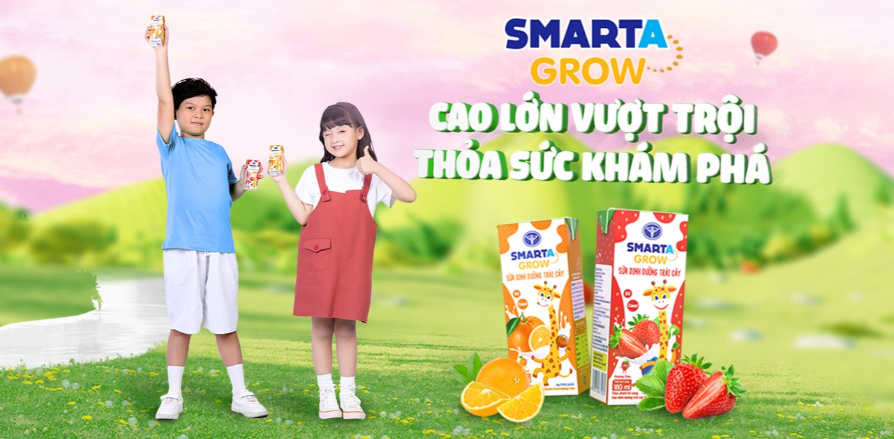 Smarta Grow dòng sản phẩm dinh dưỡng tiêu biểu được các chuyên gia dinh dưỡng Nutricare dày công nghiên cứu hướng tới hỗ trợ trẻ phát triển chiều cao, trí não. Với chất lượng dinh dưỡng vượt trội, các sản phẩm của Smarta Grow được đánh giá cao và tin dùng bởi rất nhiều bậc phụ huynh. Trong đó, nổi bật là sản phẩm dinh dưỡng Smarta Grow, sữa dinh dưỡng trái cây Smarta Grow, sữa bột Smarta IQ và sữa bột Smarta Mom.