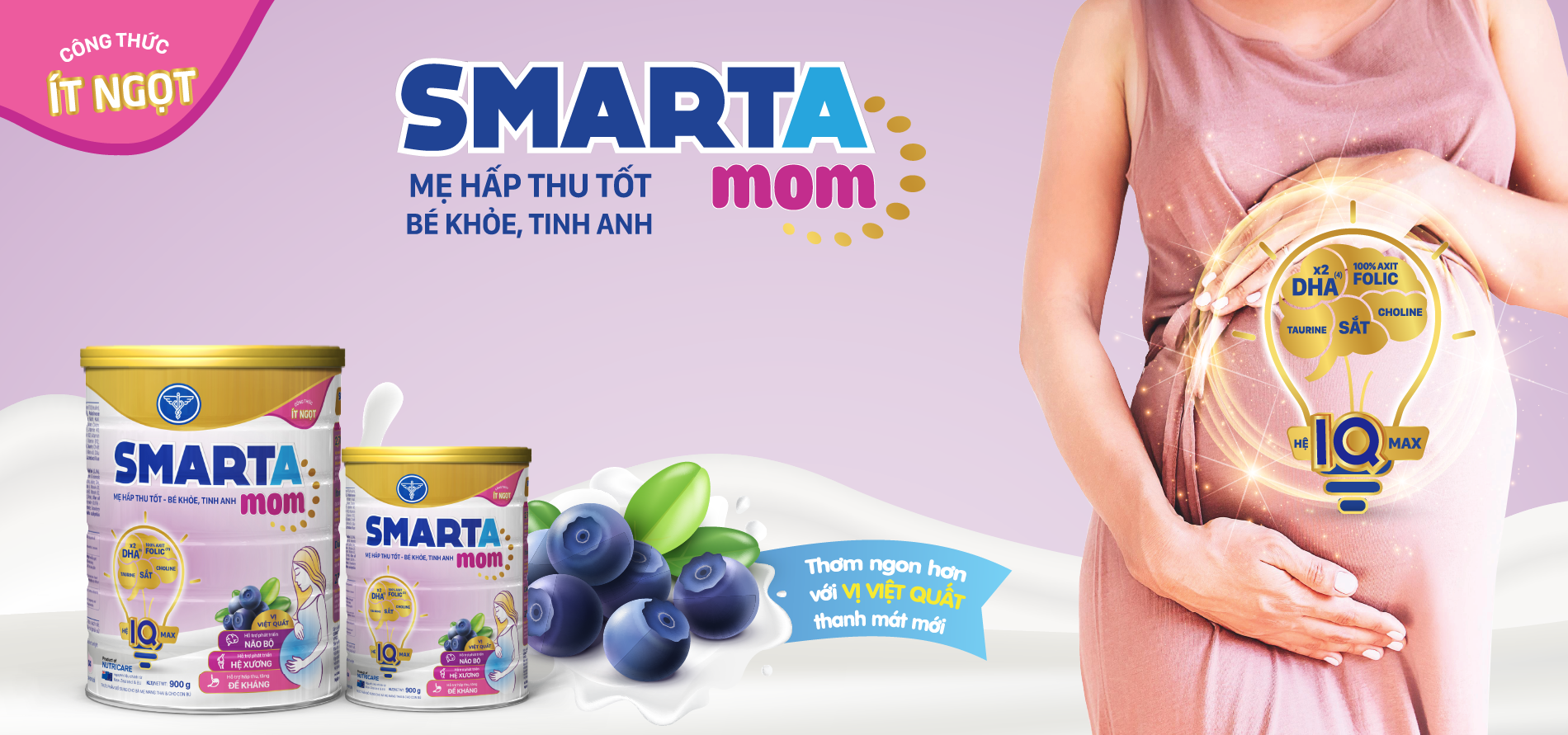 Bên cạnh đó, nhãn hàng Smarta Grow còn có sản phẩm sữa bột Smarta Mom với công thức ít ngọt, đảm bảo dinh dưỡng, giúp mẹ hấp thu tốt, bé khỏe trong thời kỳ thai nghén. Sở hữu hệ chất IQMAX cùng 27 vitamin và khoáng chất thiết yếu, Smarta Mom giúp nâng cao đề kháng, hỗ trợ mẹ bầu có một thai kỳ khỏe mạnh, giảm các dấu hiệu ốm nghén và tăng cường chất lượng sữa mẹ sau sinh. Chưa hết, sữa có vị việt quất thanh mát, thơm ngon, vô cùng phù hợp với khẩu vị mẹ bầu.