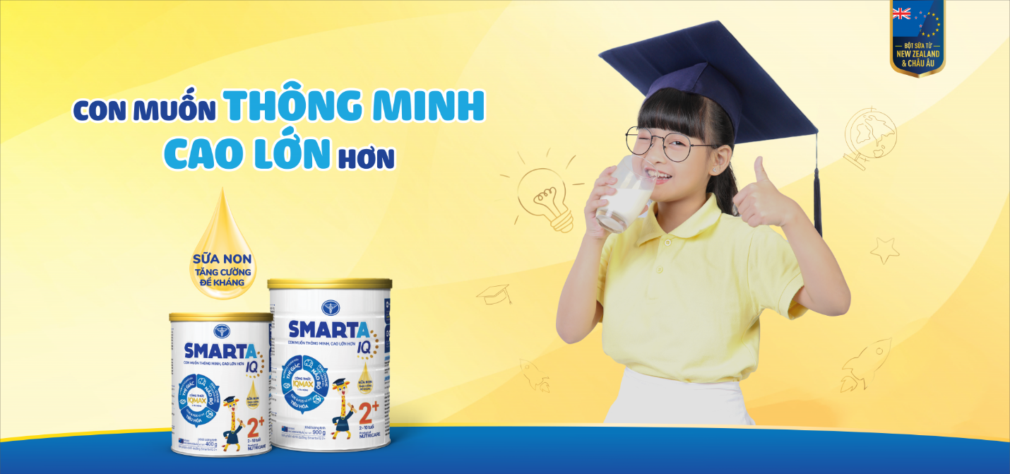 Sản phẩm dinh dưỡng Smarta IQ cùng thông điệp “Con muốn thông minh, cao lớn hơn” hỗ trợ con phát triển não bộ, thị giác, cải thiện tiêu hóa cũng được nhiều phụ huynh lựa chọn. Smarta IQ với công thức IQMAX cải tiến mới, tăng cường hàm lượng dưỡng chất DHA, Choline, ALA giúp trẻ phát triển não bộ, tăng khả năng ghi nhớ. Sản phẩm bổ sung hàm lượng Canxi Nano ưu việt hỗ trợ trẻ phát triển chiều cao vượt trội, hàm lượng Protein đạt chuẩn hỗ trợ trẻ tăng cân, bắt kịp đà tăng trưởng.