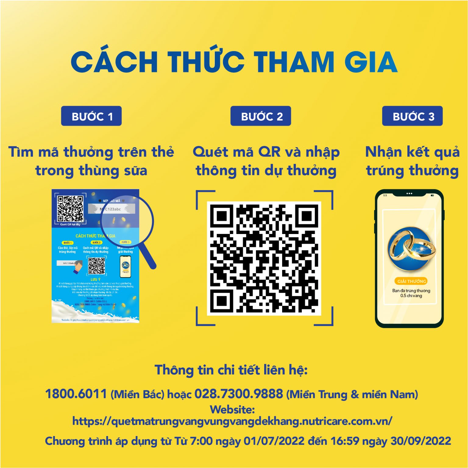 Chương trình khuyến mại Quét mã trúng vàng – Vươn tầm cao lớn đã nhận được rất nhiều sự quan tâm của người tiêu dùng với hàng ngàn giải thưởng đã được trao đi. Để đáp lại sự ủng hộ của quý khách hàng, Nutricare xin thông báo gia hạn thời gian tham gia, sản phẩm áp dụng và tăng số lượng giải thưởng của chương trình khuyến mại. Cụ thể: