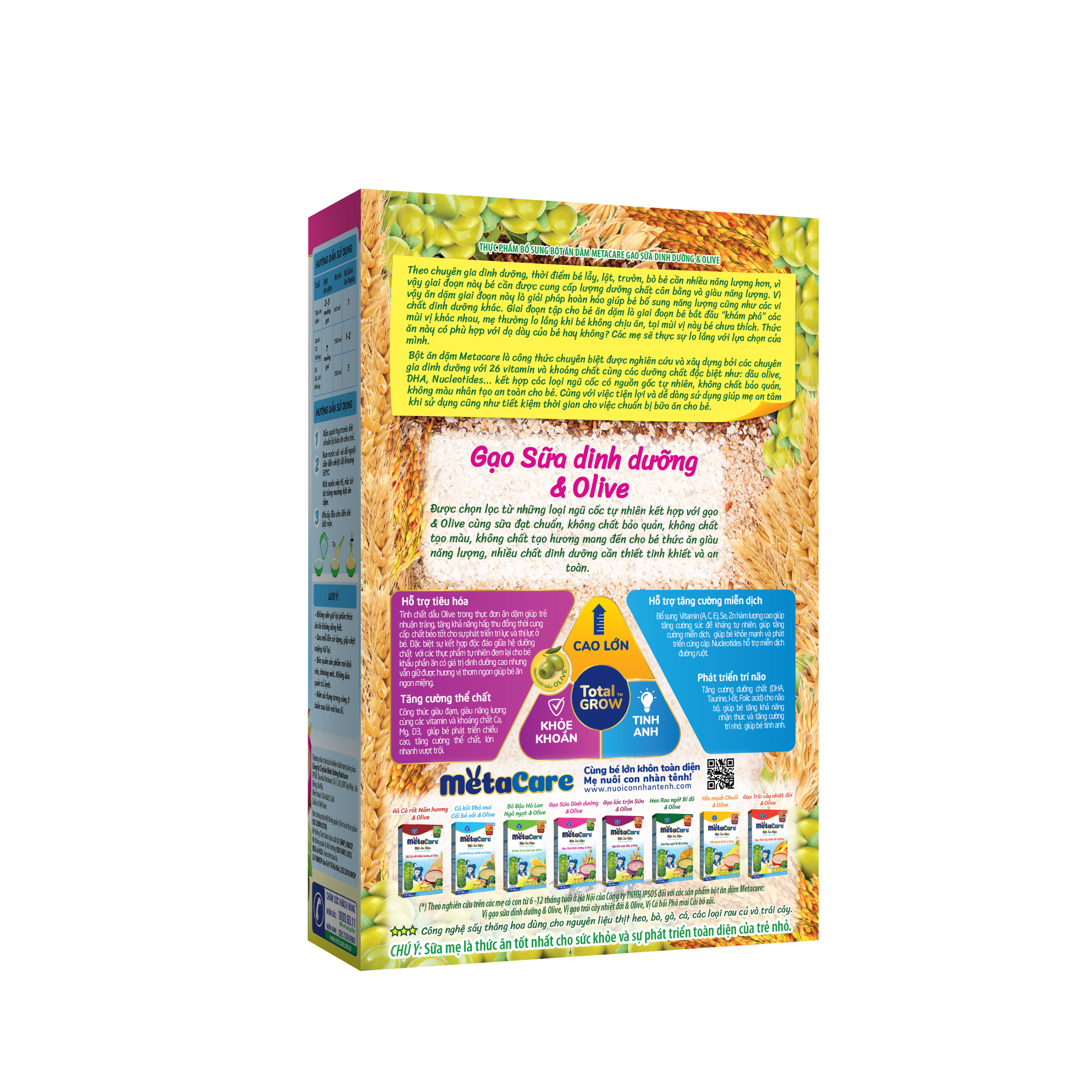 Bột ăn dặm Metacare được chọn lọc hoàn toàn từ nguồn nguyên liệu tự nhiên, đột phá với Công thức sấy đông lạnh – Freeze Drying Nhật Bản giúp giữ trọn dưỡng chất và hương vị ngon tự nhiên, bổ sung DHA, Lợi khuẩn, Tinh chất dầu Olive ưu việt giúp bé ăn ngon hơn & hấp thu tốt.