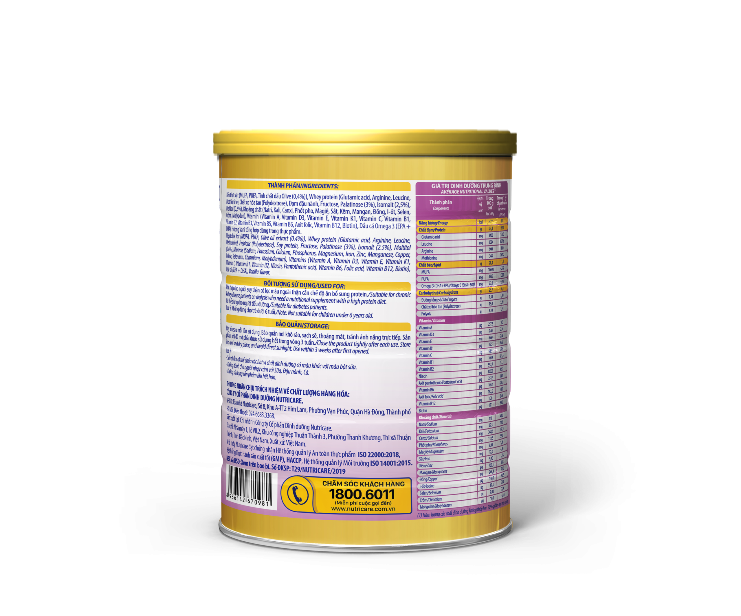 Dinh dưỡng cân đối, cao năng lượng, đầy đủ vitamin và khoáng chất thiết yếu giúp tăng cường sức khỏe. 100% Prebiotic (Polydextrose) giảm táo bón, hỗ trợ sức khỏe đường ruột.