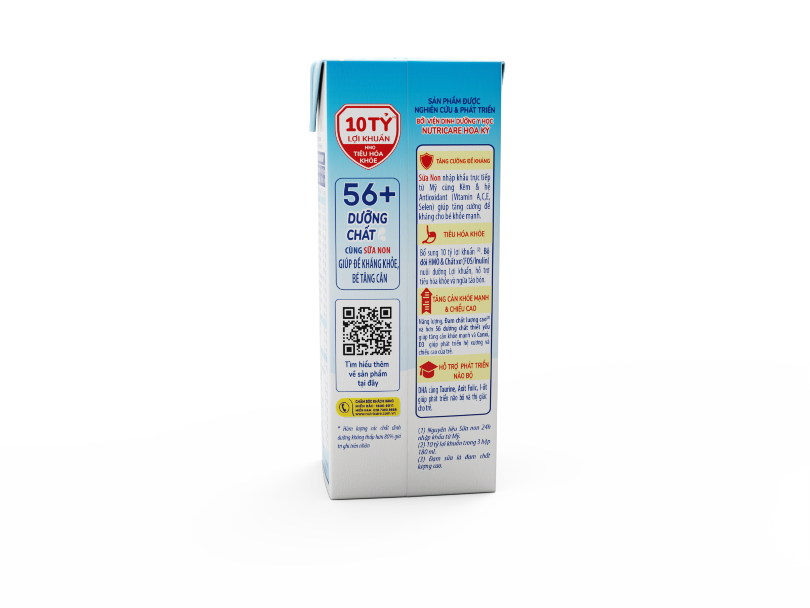 Năng lượng, Đạm chất lượng cao(3) và hơn 56 dưỡng chất thiết yếu giúp tăng cân khỏe mạnh và Canxi, D3 giúp phát triển hệ xương và chiều cao của trẻ.