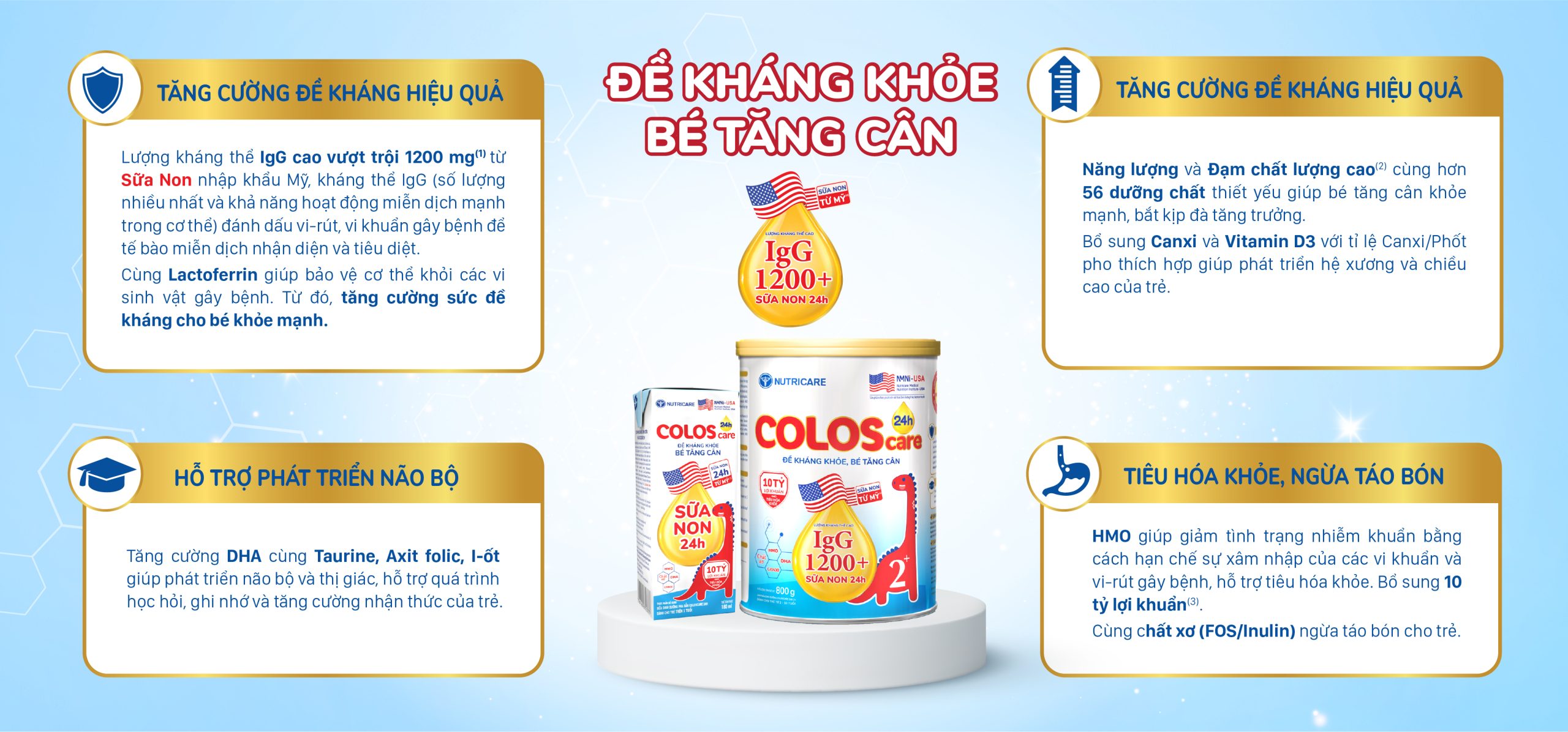 Sữa Non từ Mỹ(1) cùng Kẽm & hệ Antioxidant (Vitamin A, C, E, Selen) giúp tăng cường đề kháng cho bé khỏe mạnh.