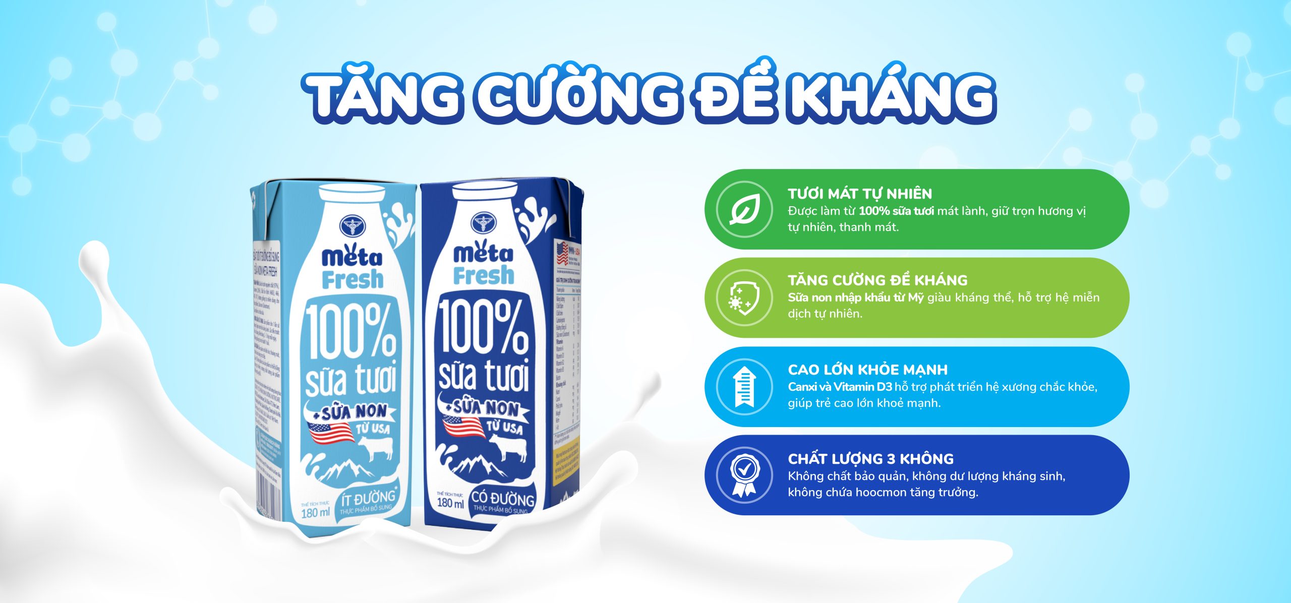 Thực phẩm bổ sung Sữa tươi ít đường bổ sung sữa non Meta Fresh