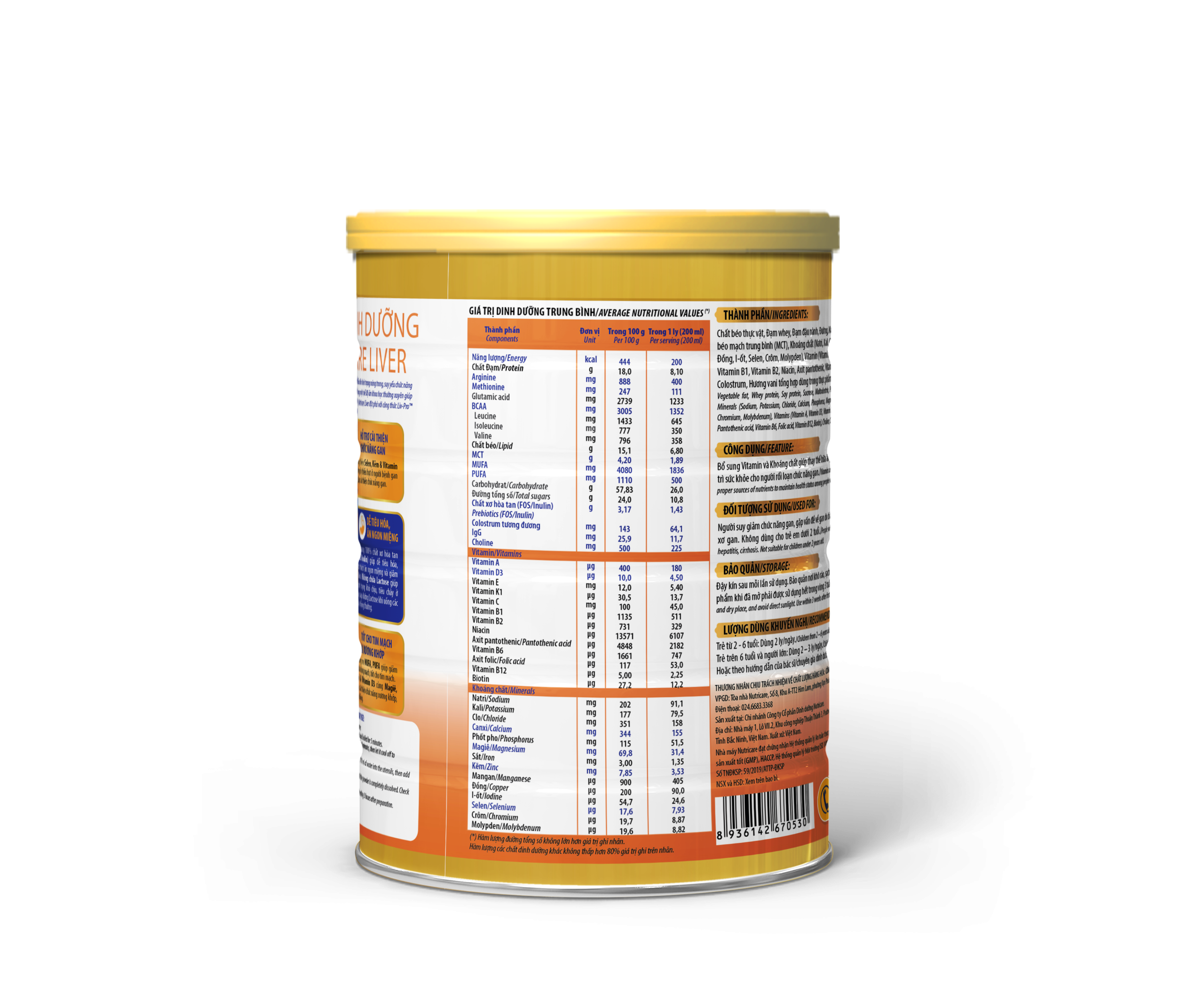 + GIẢM ÁP LỰC GAN: Đạm mạch nhánh BCAA & Chất béo mạch trung bình (MCT).