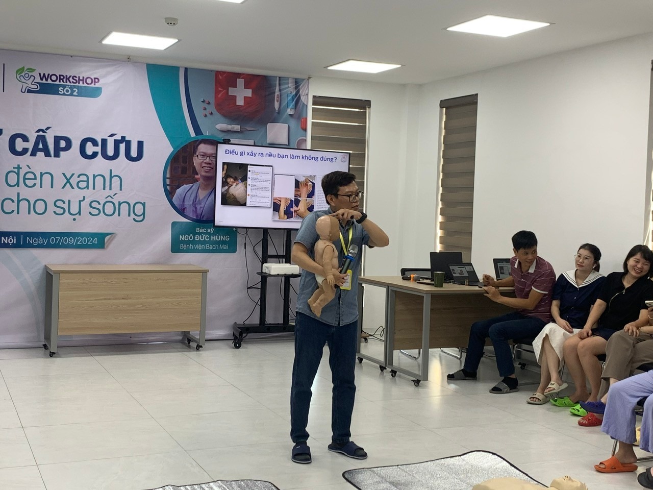Buổi Workshop đã thực sự mang lại những thông tin vô cùng hữu ích. Chuyên gia – Bác sỹ Ngô Đức Hùng – Trung tâm cấp cứu A9 Bệnh viện Bạch Mai đã chia sẻ những kiến thức chuyên sâu về cách xử lý các tình huống khẩn cấp, các vết thương thông thường, hồi sức tim phổi, sơ cứu khi bị bỏng, hóc dị vật hay đuối nước…