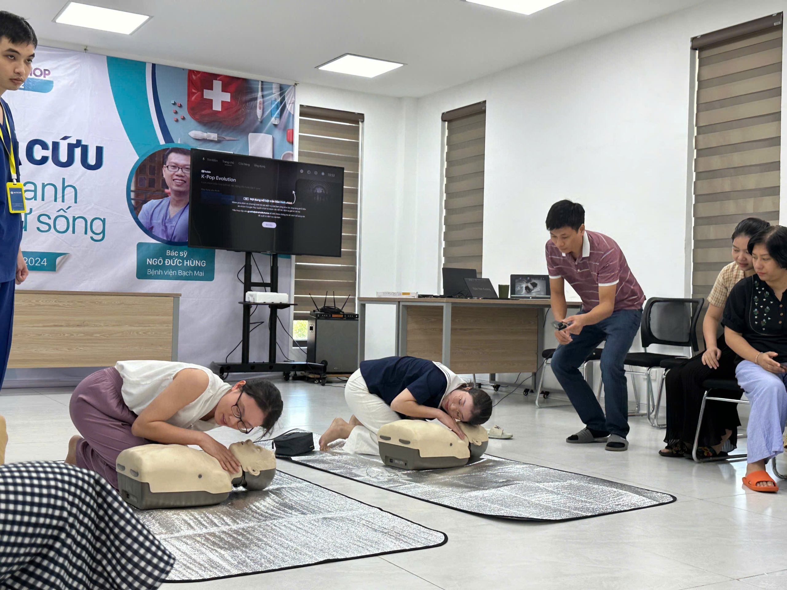 Bên cạnh phần lý thuyết, các Nutricers còn được thực hành trực tiếp các kỹ năng sơ cấp cứu trên mô hình, giúp củng cố kiến thức và tăng cường sự tự tin.